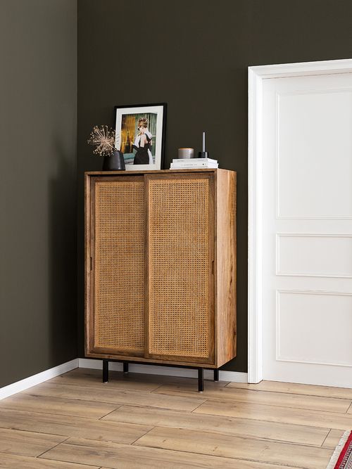 Wat echt niet kan zijn te veel donkere en te grote meubels. Ze doen de kamer kleiner lijken en maken hem benauwd en ouderwets. Zorg ervoor dat de kamer nog kan “ademen”, dat wil zeggen dat hij “luchtig” is ingericht met lichtgekleurde meubelen en stoffen. Natuurlijk hangt het altijd af van het type appartement. Als je hoge plafonds hebt, kan een donkere muur zoals die in onze voorbeeldfoto heel goed werken. Maar ook hier zie je alleen één donkere houten ladekast.